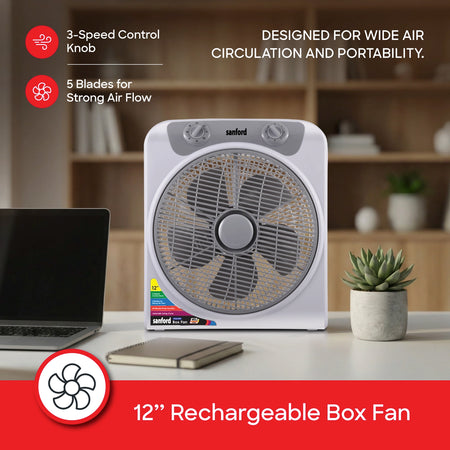 مروحة صندوقية قابلة لإعادة الشحن مقاس 12 بوصة من سانفورد مع إضاءة LED | SF919BFN
