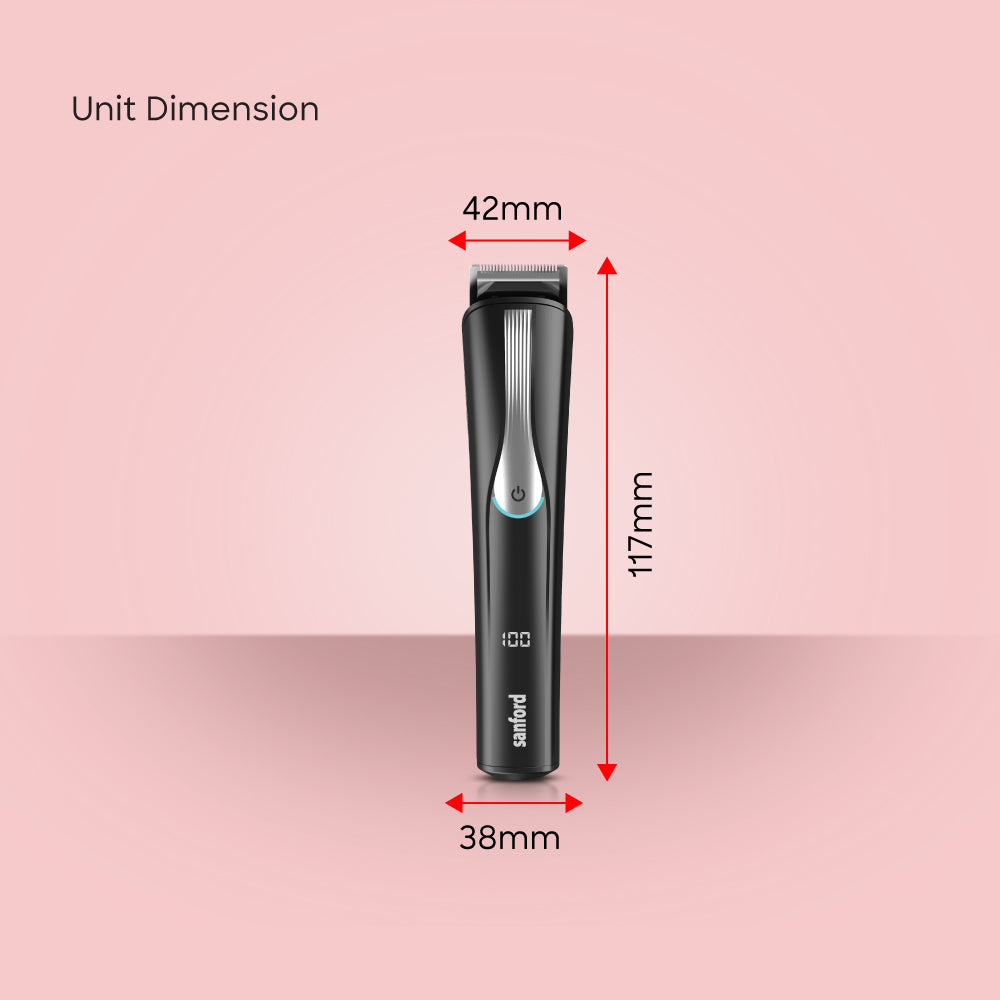 The Sanford SF9725HC Rechargeable Hair Clipper is a complete 14-in-1 grooming solution designed for precise, comfortable, and efficient personal care. Engineered for versatility, it includes multiple interchangeable heads for hair cutting, detailing, shaving, and nose trimming, allowing full grooming with a single device. The full-size trimmer delivers consistent performance for haircuts and beard styling, while the design trimmer and micro shaver handle fine detailing and clean edges with accuracy.