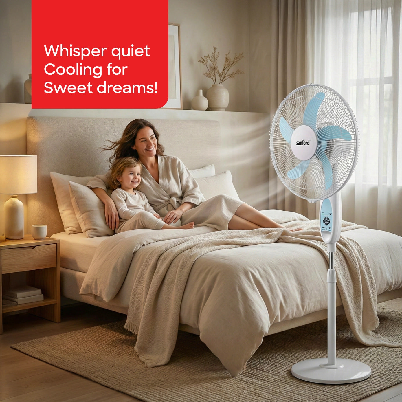 • Emergency & Power Outages – Rechargeable battery and LED light ensure comfort and illumination during blackouts.